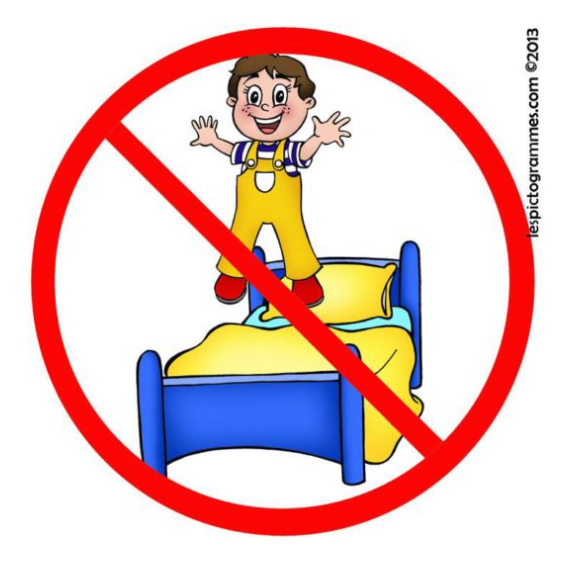 Le lit peut être dans un coin, agrémenté de coussins de corps ou tout autre repère physique qui peut sécuriser l’enfant. Le lit doit être utilisé pour dormir ou quand on est malade, et ne doit pas être transformé en espace de jeu.